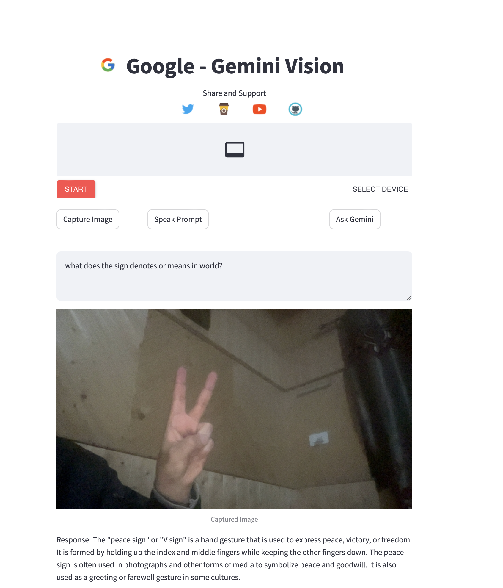 Google Gemini Vision Pro is a versatile application that combines image processing πΌοΈ, speech recognition π€, and text-to-speech capabilities π’. With this application, you can capture images using your webcam π·, convert spoken words to text π, generate image descriptions π, and even have the descriptions spoken back to you π£.